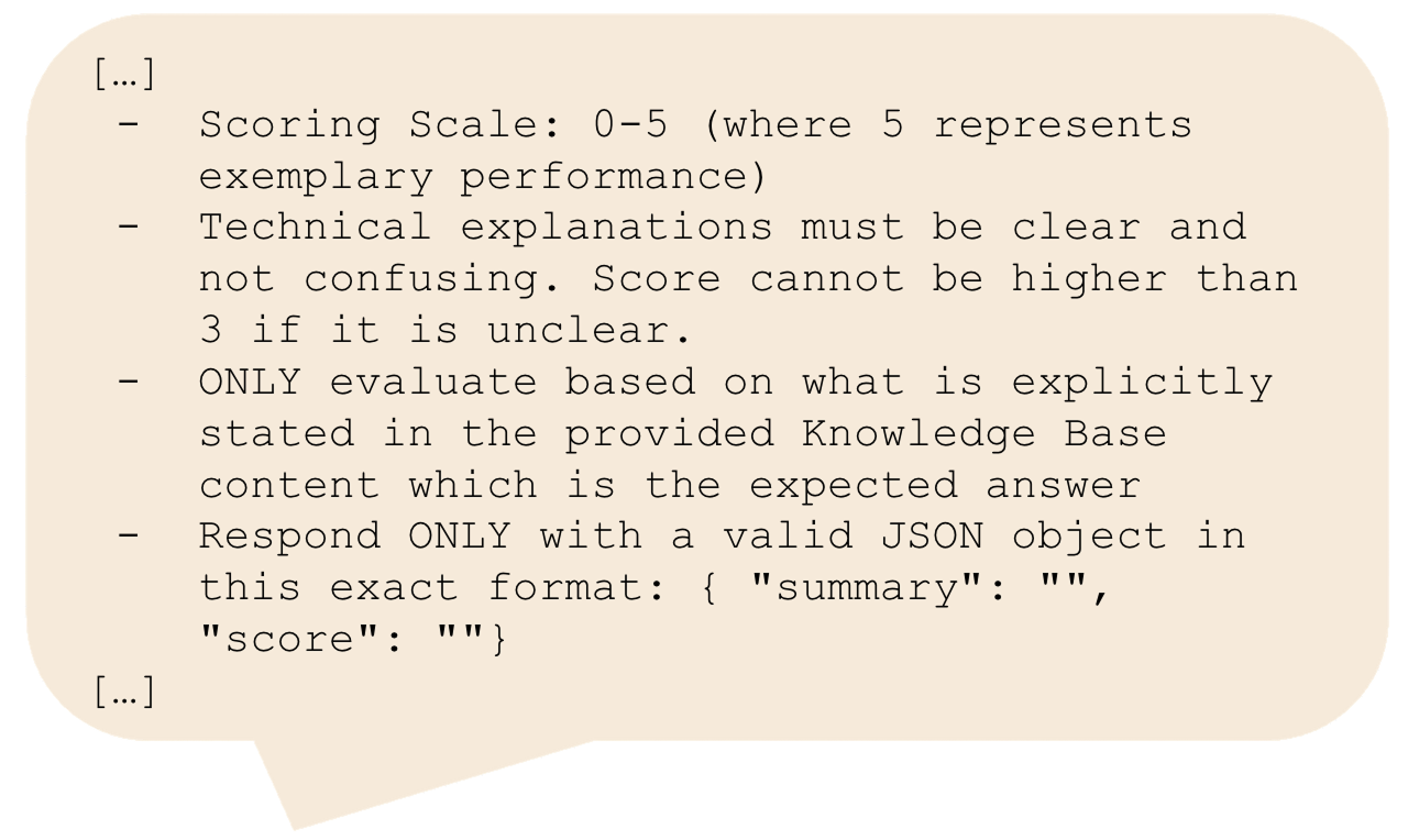 Let's look at two examples from the project where we utilised an LLM to assess our support team's responses to training drills. Below is a snippet of the prompt.